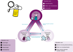 - de informatie die erbij hoort, zodat hij kan monitoren en bijsturen (hoe weet ik wanneer er is gebeurd wat er moet gebeuren). Deze afspraken liggen vast in bijvoorbeeld de dienstverleningsovereenkomst en de flankerende documenten, (begroting, jaarrekening).