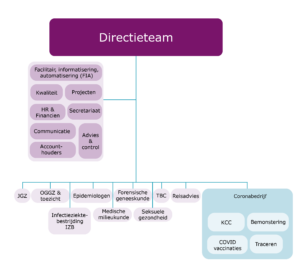 GGD regio Utrecht staat onder leiding van de Directeur Publieke Gezondheid. Naast de uitvoering van de werkzaamheden als opgedragen ondersteunt de organisatie van GGDrU het Dagelijks en Algemeen Bestuur. In het onderstaande organogram ziet u hoe de huidige organisatie is opgebouwd. Daarnaast werken we aan de ontwikkeling van de organisatie en streven we naar een veerkrachtige en flexibele GGD.